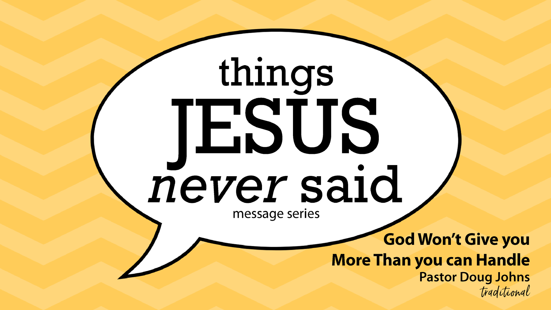 Join us as we examine "Things Jesus Never Said," with the message, "God Won't Give you More Than you can Handle," by Pastor Doug Johns and based on Psalm 46:1-3. Zaria Modeste leads our contemporary music.