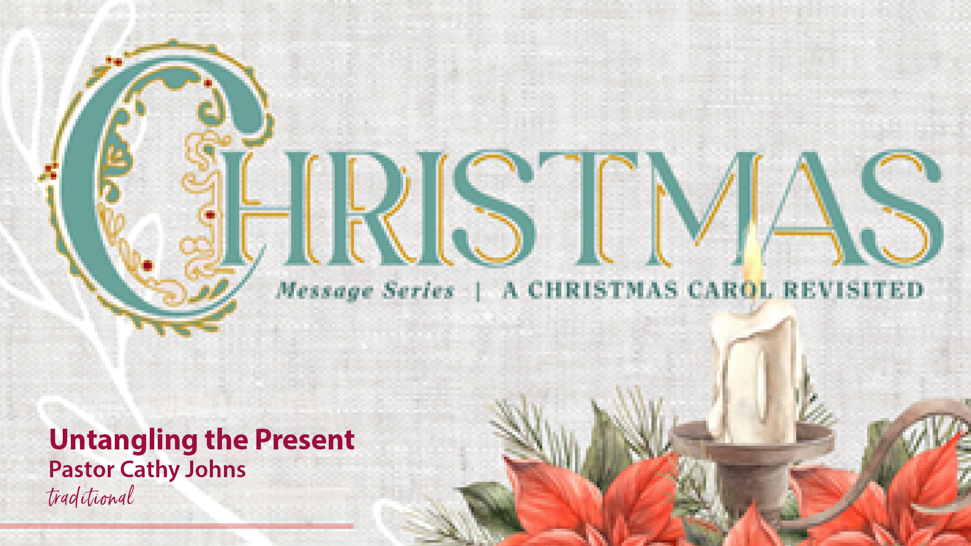 Join us for the next message, "Untangling the Present " in the series, "A Christmas Carol Revisited." Pastor Cathy Johns brings the message from Mark 1:1-8. Zaria Modeste leads the Praise Band.