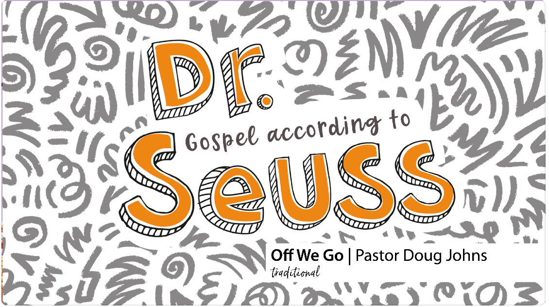Join us for "Off We Go," the next message in the series, "The Gospel According to Dr. Seuss." Pastor Doug Johns preaches from Matthew 28:16-20. Chuck Stanley, traditional music leader, leads the Chancel Choir and plays the organ.