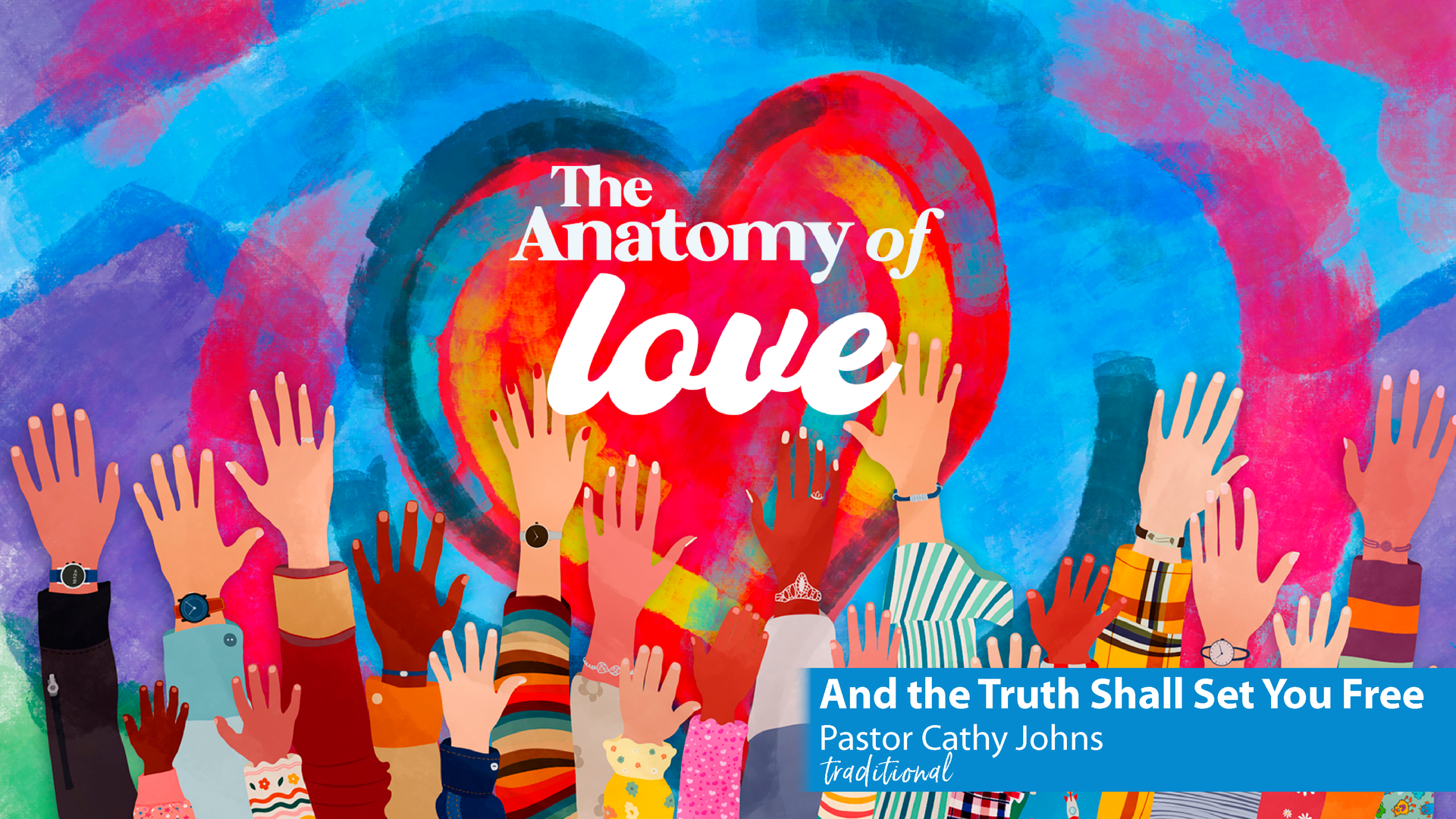 Join us for contemporary worship and a new message in the series, "Anatomy of Love." Pastor Cathy Johns gives the message, "And The Truth Shall Set You Free," based on 2 John 1:4-8. The Praise Band is led by Zaria Modeste.